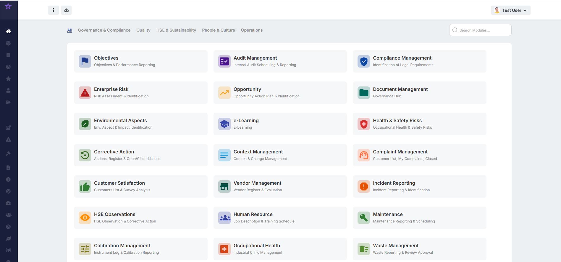 Over 20 modules to cover various elements of international management system and corporate governance. Our commitment to excellence ensures that every feature is tailored to meet the evolving needs of your organization, providing you with the tools necessary to thrive in a competitive landscape. Experience a seamless integration of processes that enhances productivity and fosters a culture of continuous improvement.